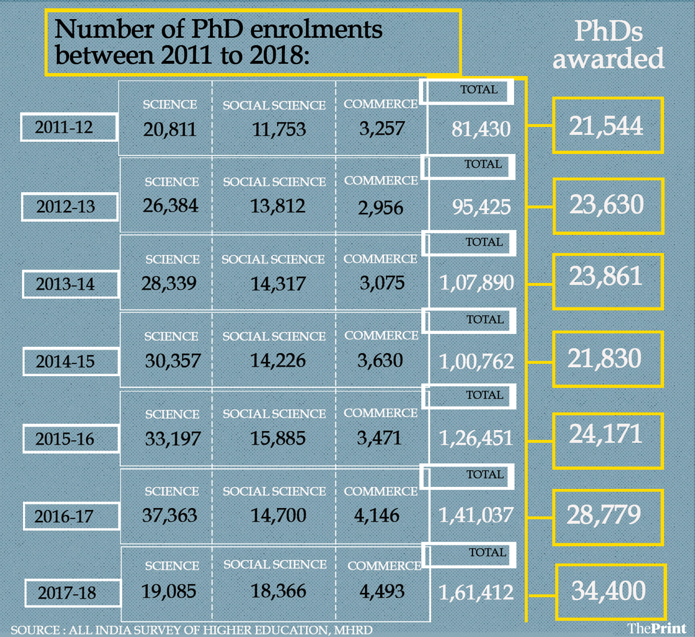 Also read: 50% jump in PhDs since 2011, govt wants study on how good many of them actually are