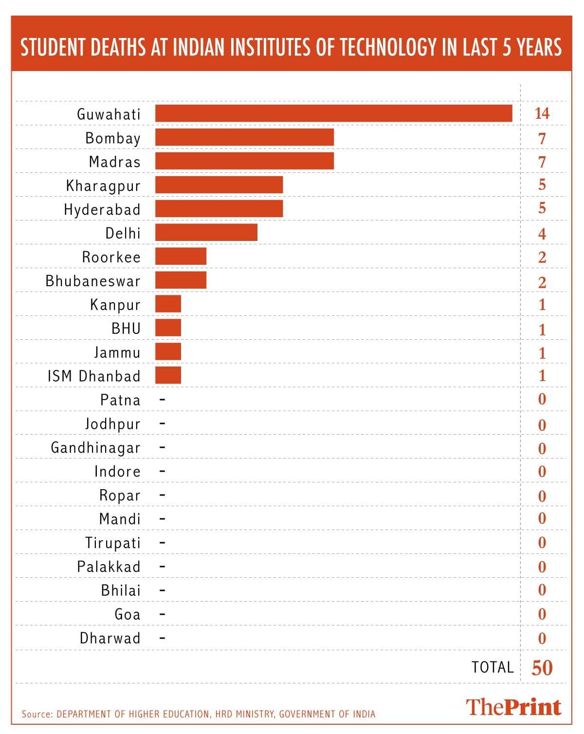 New Delhi: The Indian Institute of Technology (IIT), Guwahati, has reported 14 student deaths in the last five years, including suicides, the Ministry of Human Resource Development told Parliament on 2 December. This is the highest number of deaths in any of the 23 IITs for the given period.
