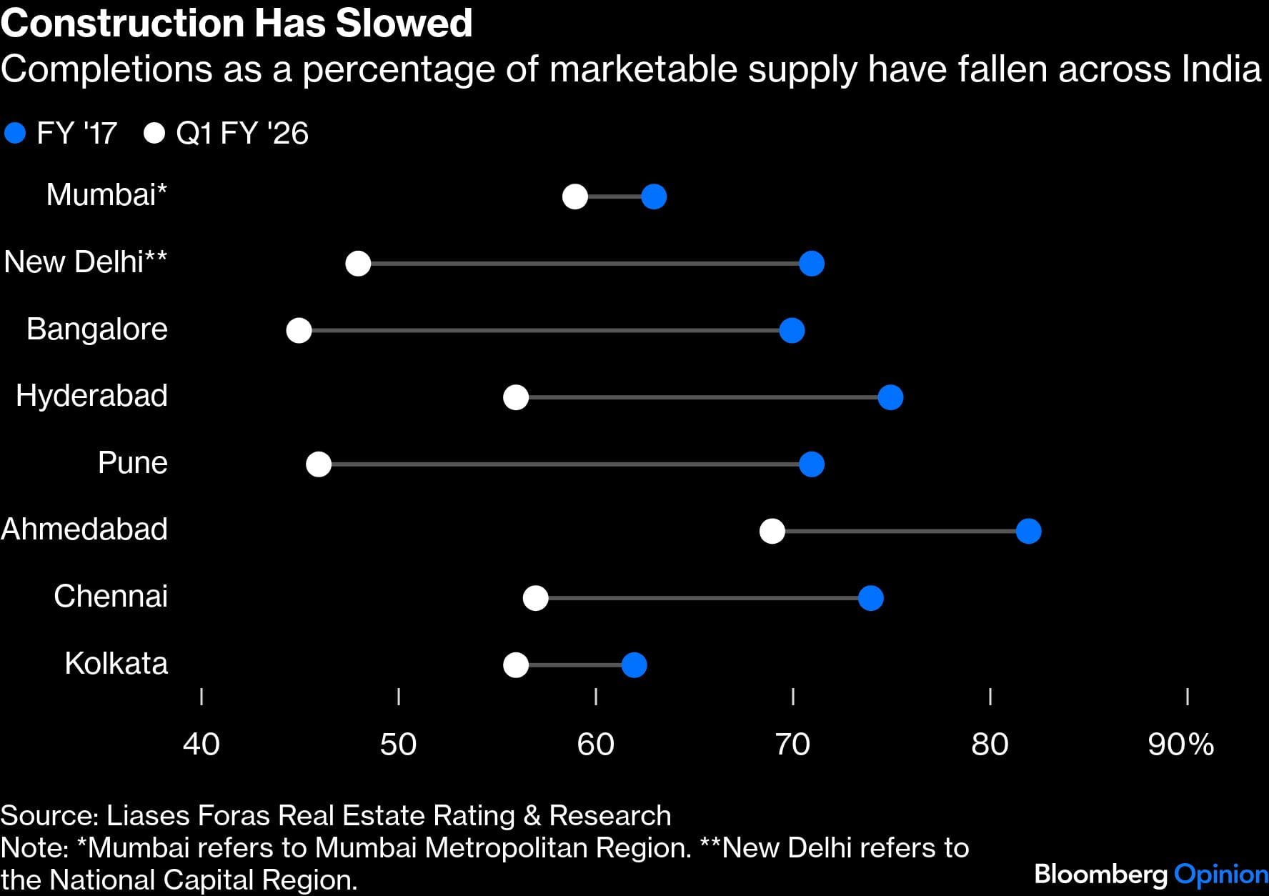 Unease with India’s real-estate developers has been growing for some time. The BSE Realty Index is down more than 30% from its peak in June 2024. This week, though, the sense of foreboding deepened. And the reason for that goes back to the stock market.