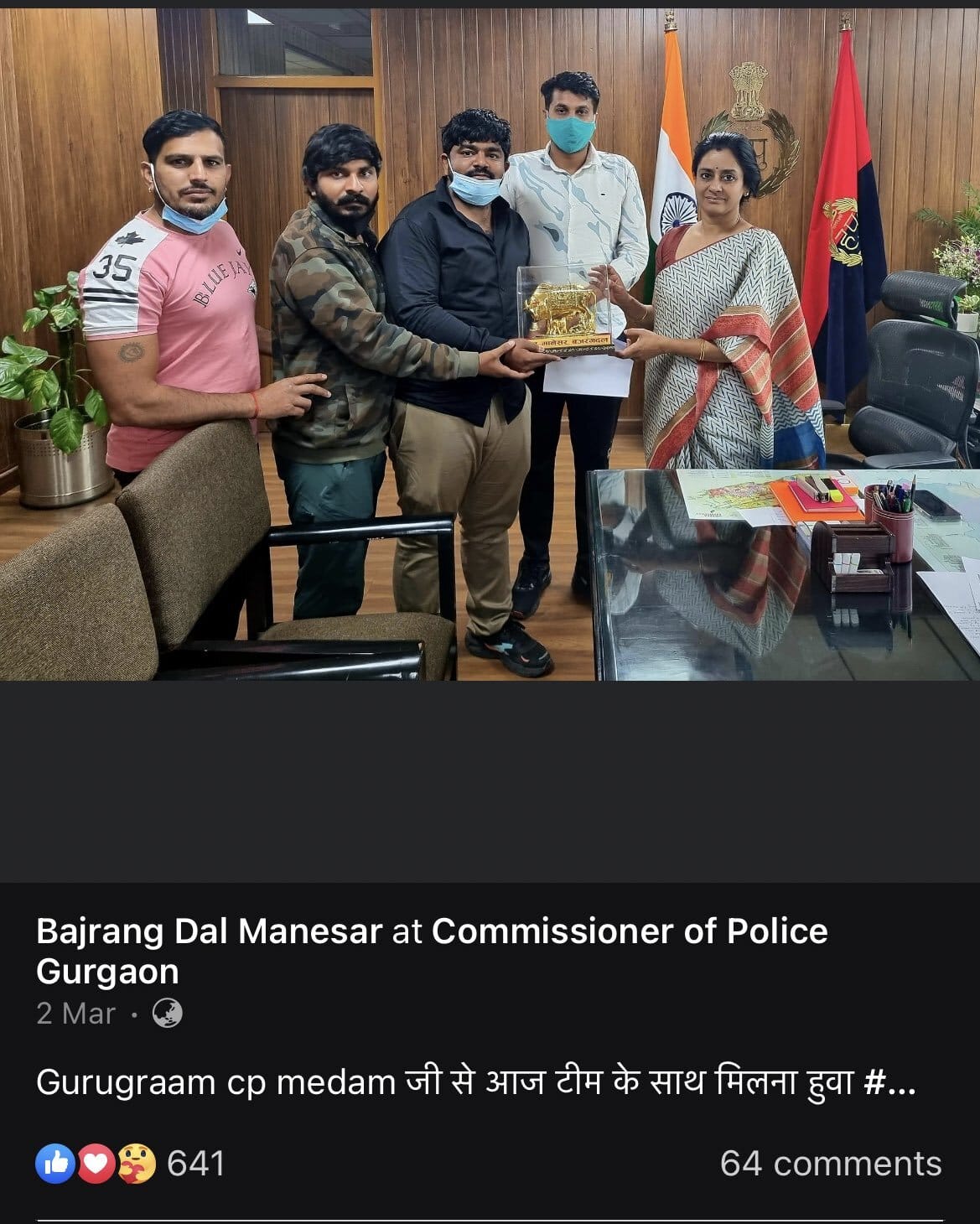 In pictures on one of his Facebook pages, Bajrang Dal Manesar — now locked — he can be seen with senior police officers and bureaucrats from Haryana, religious leaders and politicians.