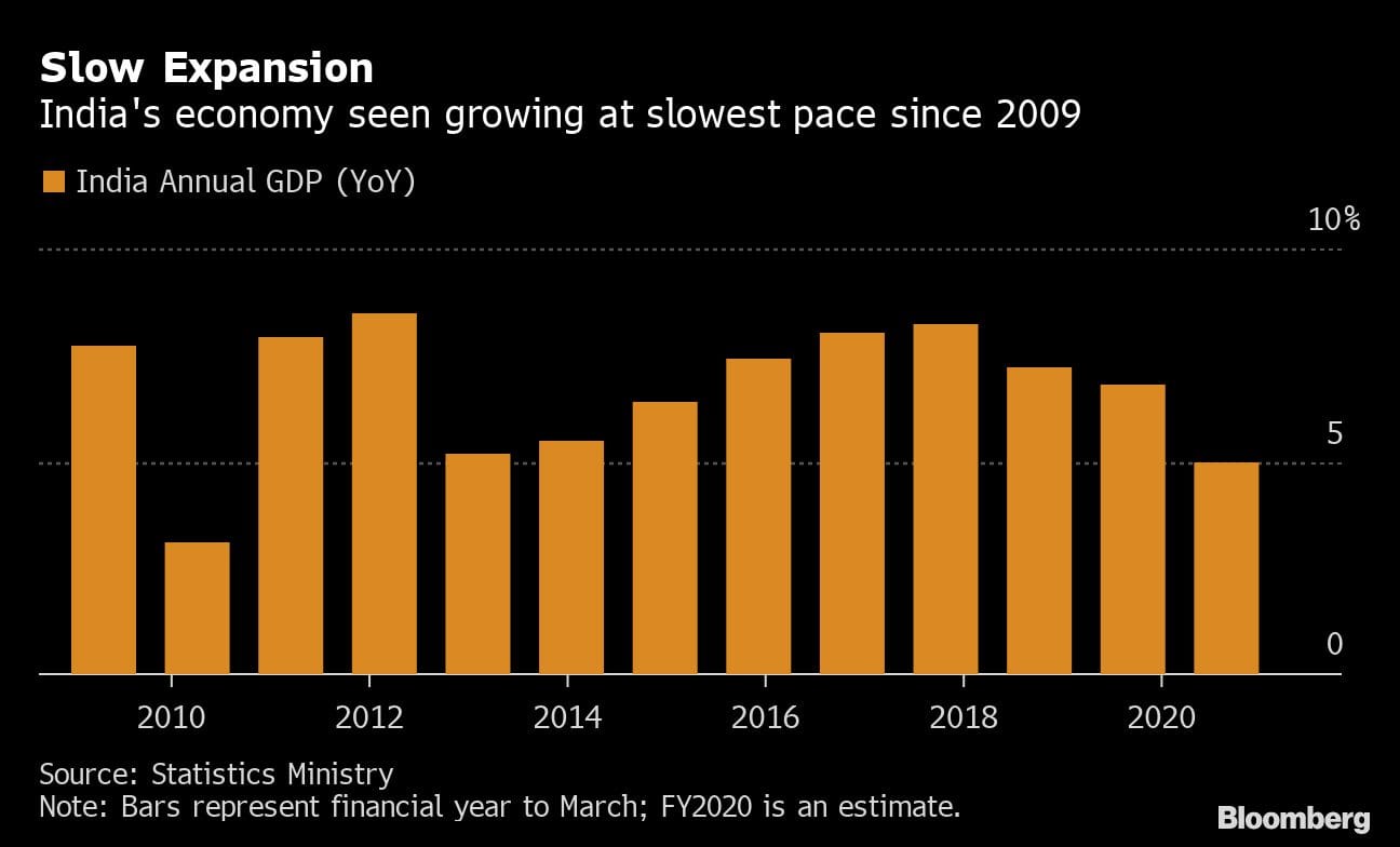 From 8% growth three years ago, the economy is set to expand just 5% in the fiscal year through March, the weakest performance since 2009. The International Monetary Fund last week slashed India’s growth forecast for this year by 1.2 percentage points to 5.8%, specifically citing the nation as a reason for cutting its global growth outlook.