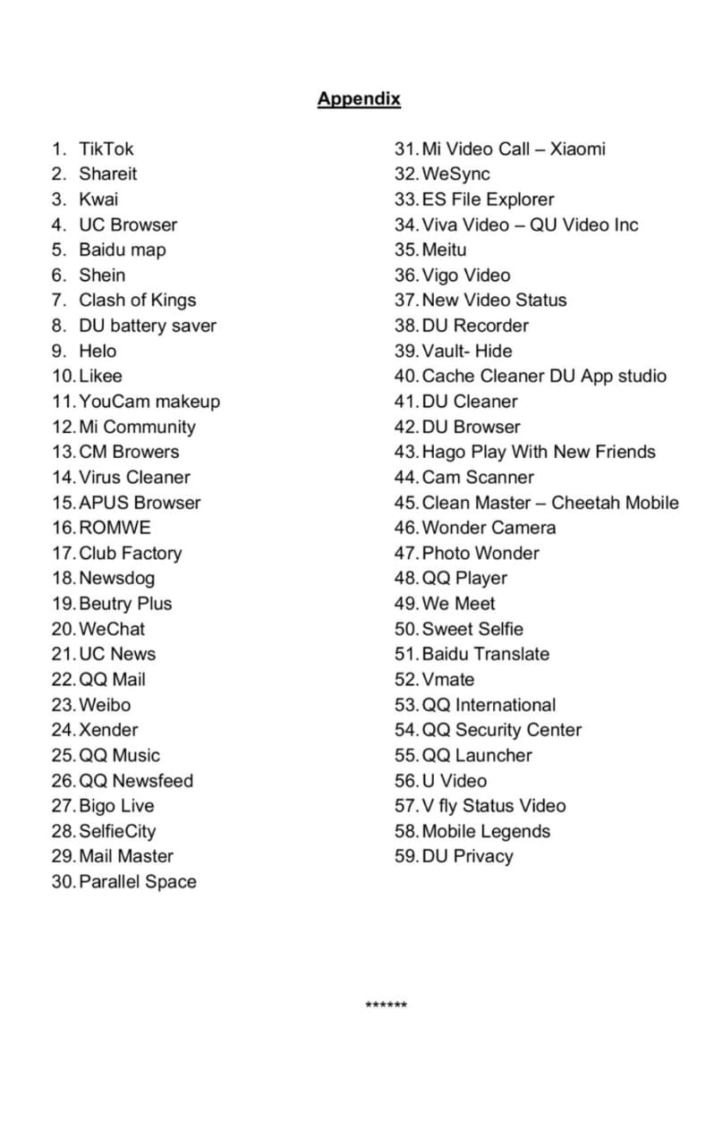 Very good ban of all China applications!
