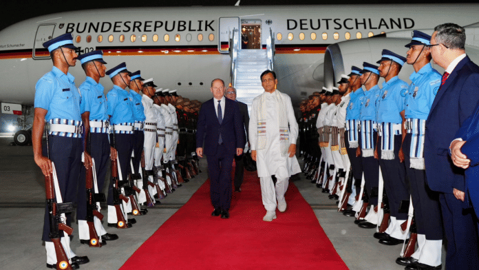 New Delhi: German Chancellor Olaf Scholz arrived here on Thursday as part of his three-day official visit to India during which he and Prime Minister Narendra Modi will take part in wide-ranging talks on strategic ties in several key areas.