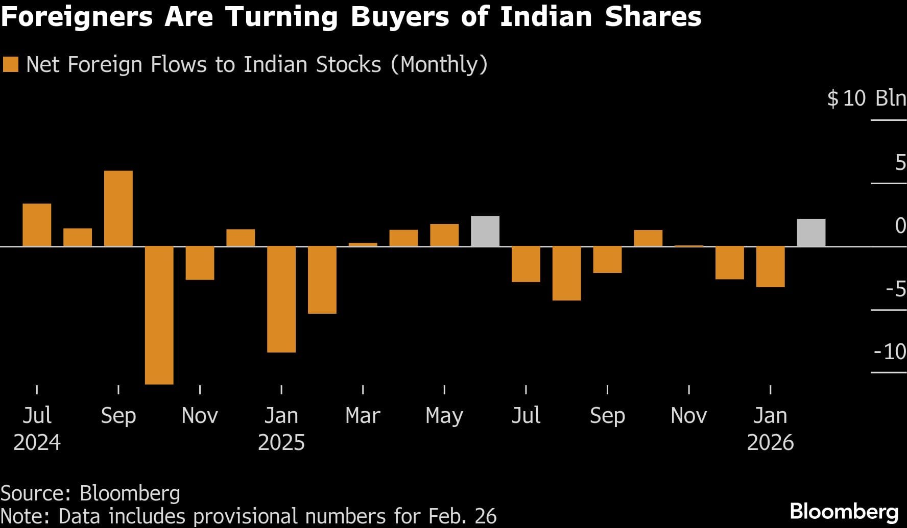 Foreign investors are returning to Indian stocks at the fastest pace in eight months, supported by stabilizing corporate earnings and a US trade deal that improves the outlook for the months ahead.