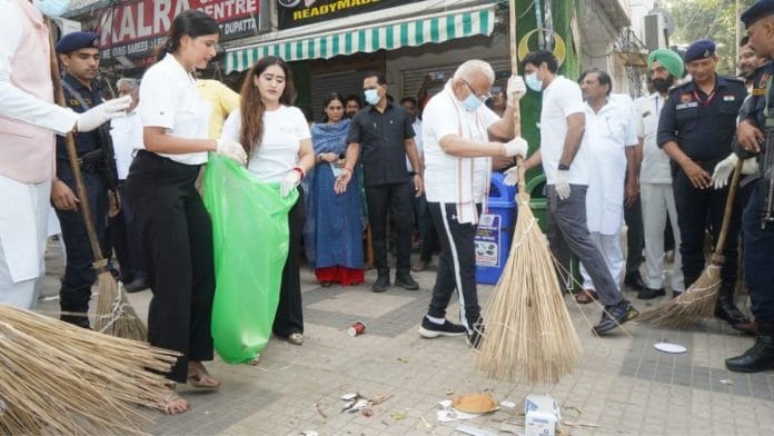 Soon after the Swachhata Hi Seva campaign in Chandigarh on 25 September, the birth anniversary of Deen Dayal Upadhyay, Khattar posted pictures of himself on X, sweeping the market with a broom, wearing a mask.
