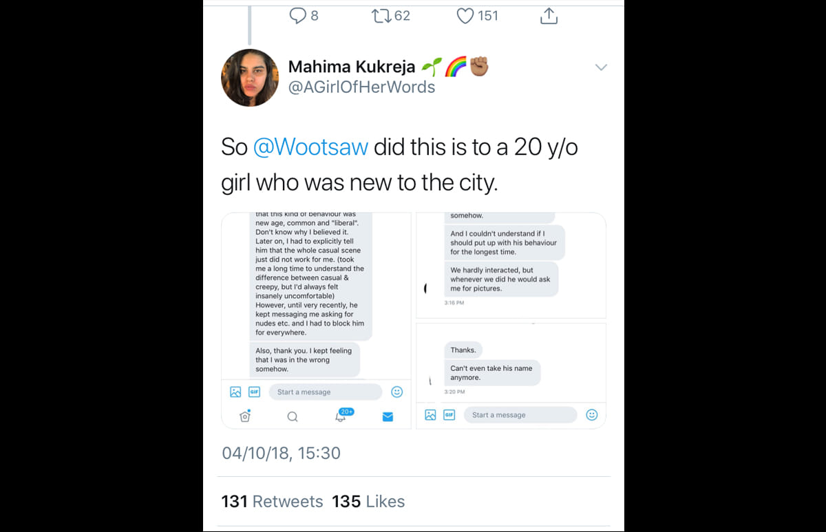 “We are also aware that by extending safe working spaces and a collaborative environment to people like Utsav, we have contributed towards a toxic environment that can be scary and unsafe for women.”
