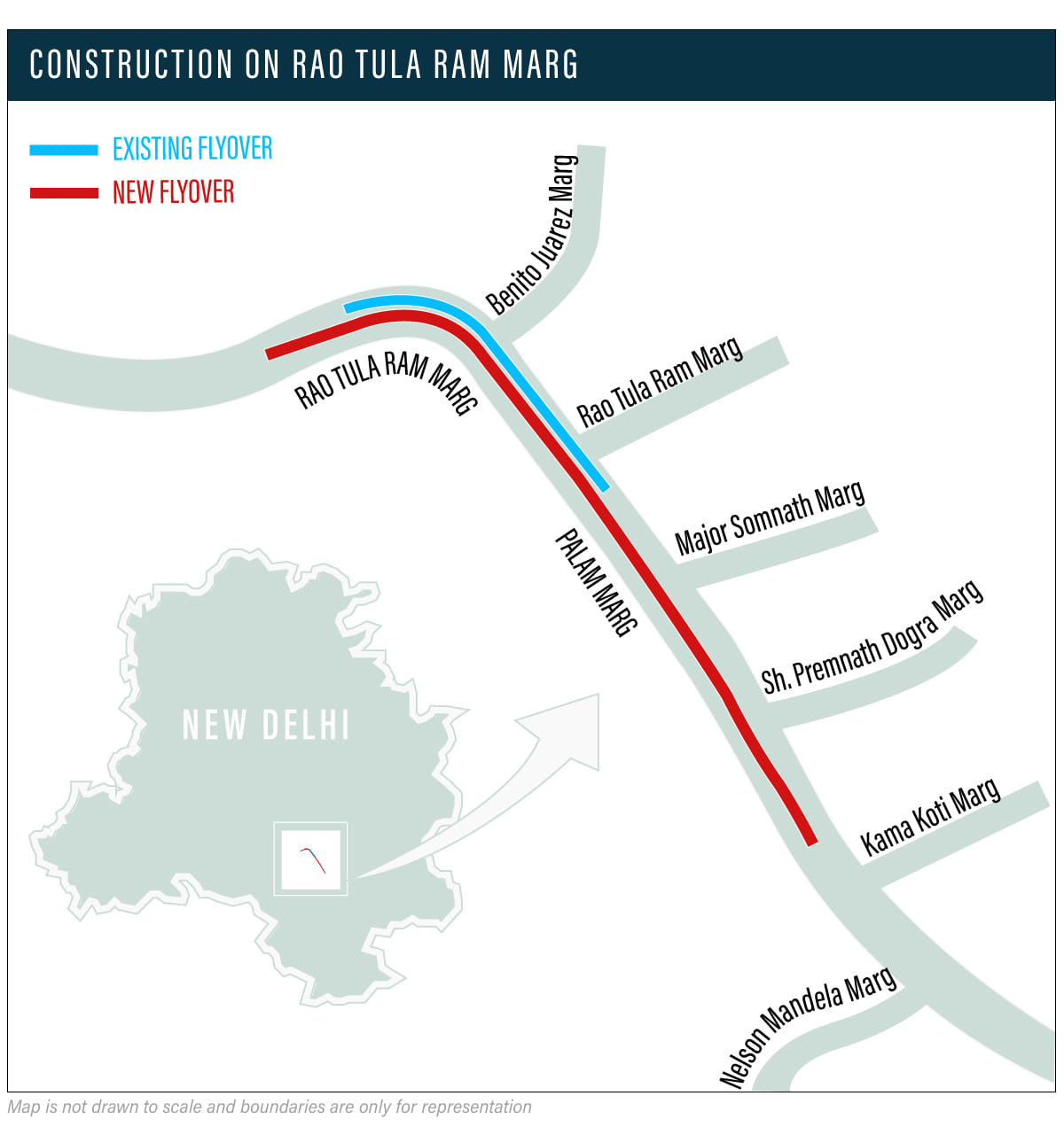 The new three-lane flyover is coming up parallel to a 900m-long single-carriageway flyover on Rao Tula Ram Marg’s T-junction with the Outer Ring Road near Vasant Vihar. The existing flyover was opened in 2009, but was ill-equipped to handle the estimated daily flow of about 2 lakh vehicles.
