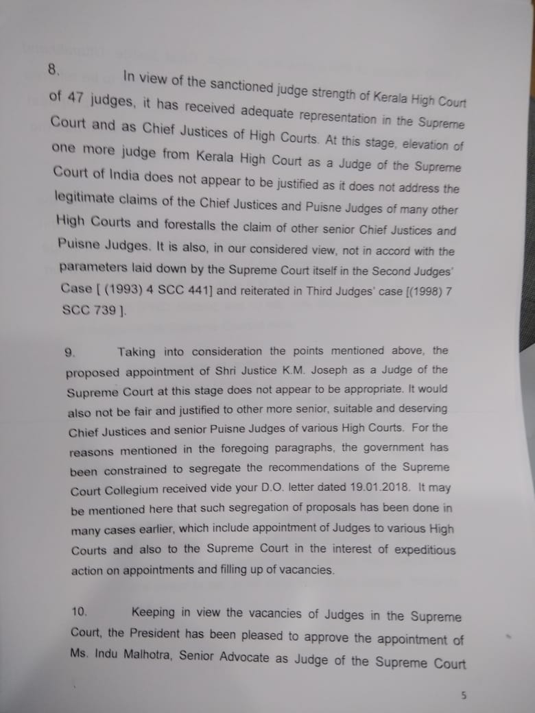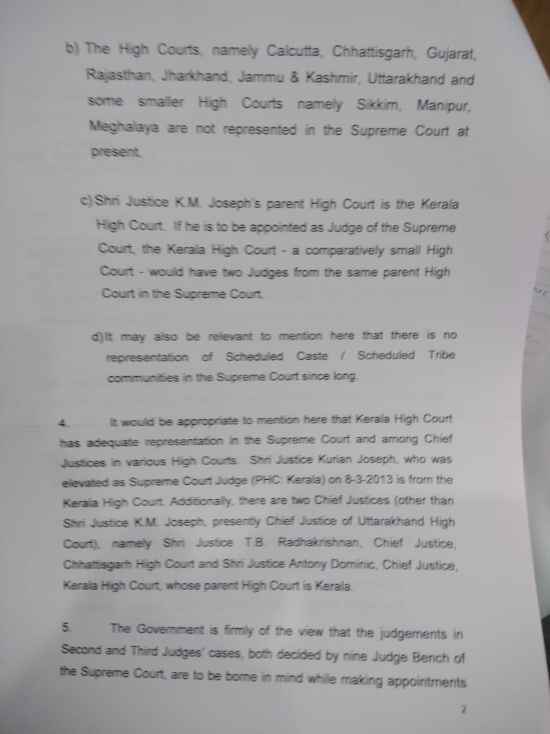 Citing these points, the government said the appointment of Joseph to the Supreme Court would not be “appropriate” or “fair and justified to other more senior, suitable and deserving” judges.