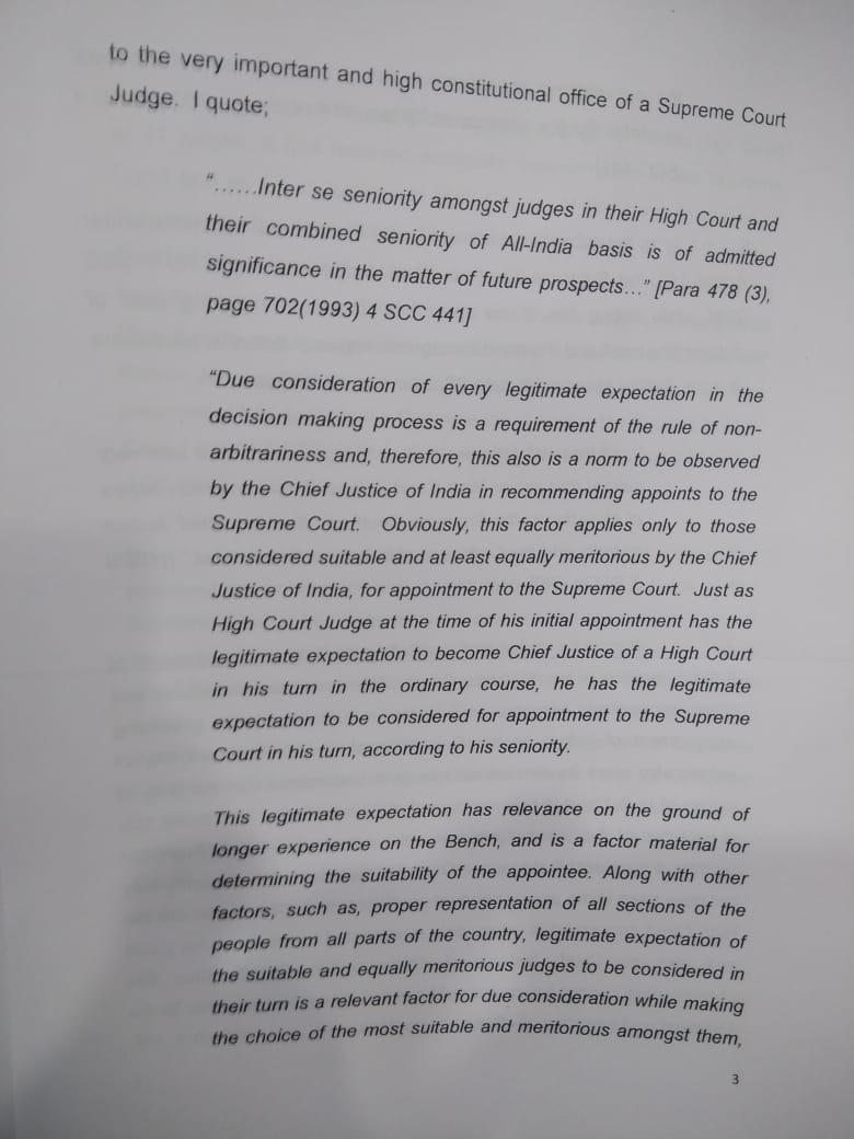 “…This legitimate expectation has relevance on the ground of longer experience on the bench, and is a factor material for determining the suitability of the appointee,” the bench had said.