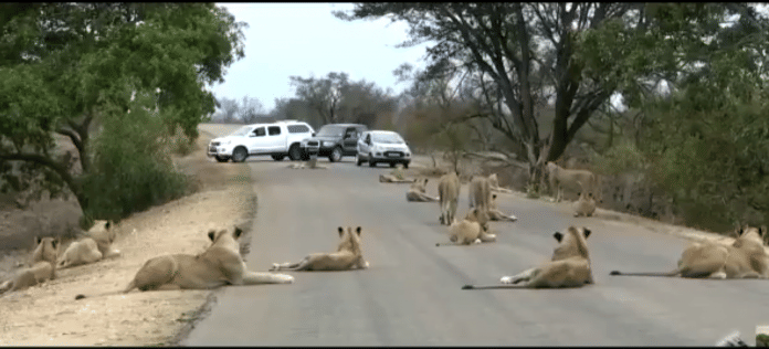 A few seconds into the video, it shows a pride of lions blocking a road that is supposedly in Gujarat. This too, however, has been lifted from another viral YouTube video titled Largest Lion Pride Ever Blocking Road in Kruger Park.