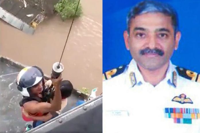 Thiruvananthapuram: Capt. P. Rajkumar of the Indian Navy, who skillfully manouevred a Sea King 42B chopper and rescued 26 people from a flood-hit area in Kerala in a single sortie Friday, has been hailed as a hero.