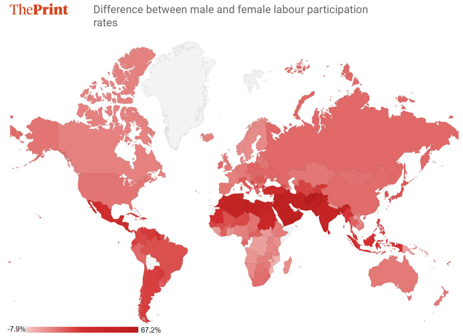 Of the 20 countries with the widest difference in male and female labour force participation rates, India — ranked 12th — is the only non-Islamic country.