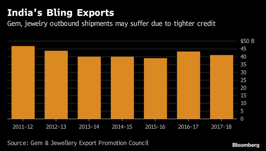 In the nine months since India’s biggest bank fraud came to light, jewellers have struggled to get credit to run their businesses. Borrowing costs have risen as the $2 billion banking fraud allegedly perpetrated by diamantaire Nirav Modi unraveled and the central bank stepped in, banning short-term financing in foreign currency to limit the damage to the financial system. The fallout from the fraud has been worsened by a debt crisis at a local lender.