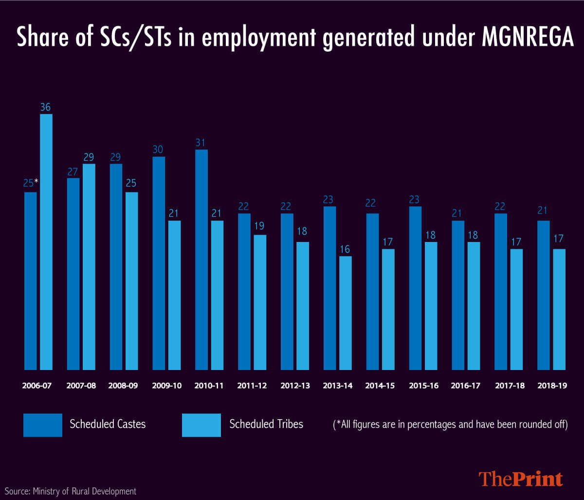 MGNREGA data available with the ministry shows the share of SCs in the total employment generated under the scheme in its first year in 2006-07 was 25 per cent.