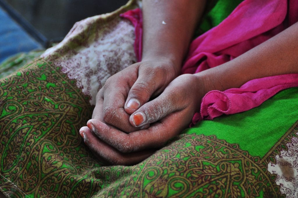 This 12-year-old girl only recently migrated to the country. She says her mother decided to flee Myanmar after they saw their family members getting beaten up in front of them. She has become a rag picker to help make ends meet. Her hands have become rough and dry because of the strenuous job.