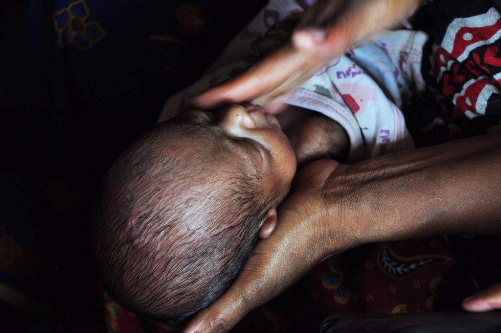 She was massaging her sister’s premature seven-month-old son, with the last bit of oil that she had left.