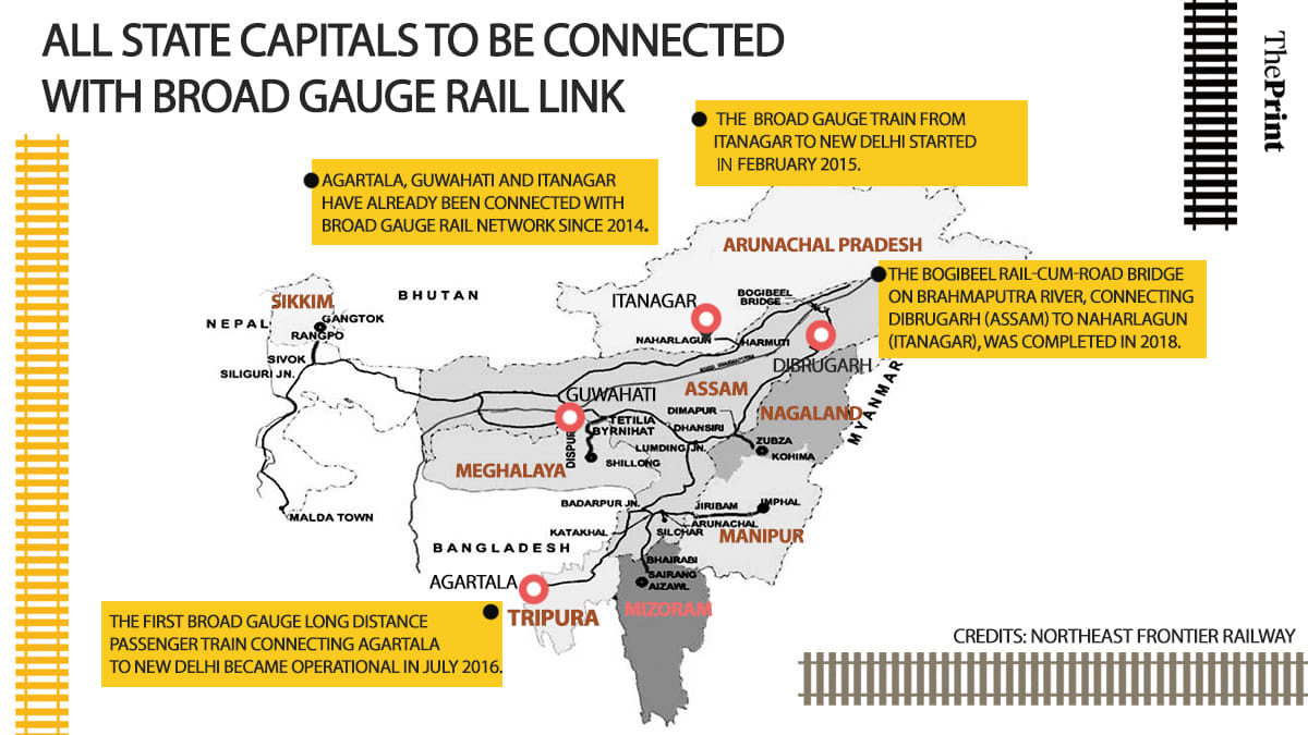 “Of the eight Northeast state capitals, Agartala, Guwahati and Itanagar have already been connected with broad gauge rail network since 2014. The deadline for connecting all the state capitals with broad gauge rail network is 2020,” said a railway ministry official.