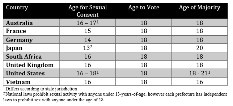This legally defined approach to adulthood is mirrored in other countries, where there are differences between the age of majority and social responsibilities granted to young people.