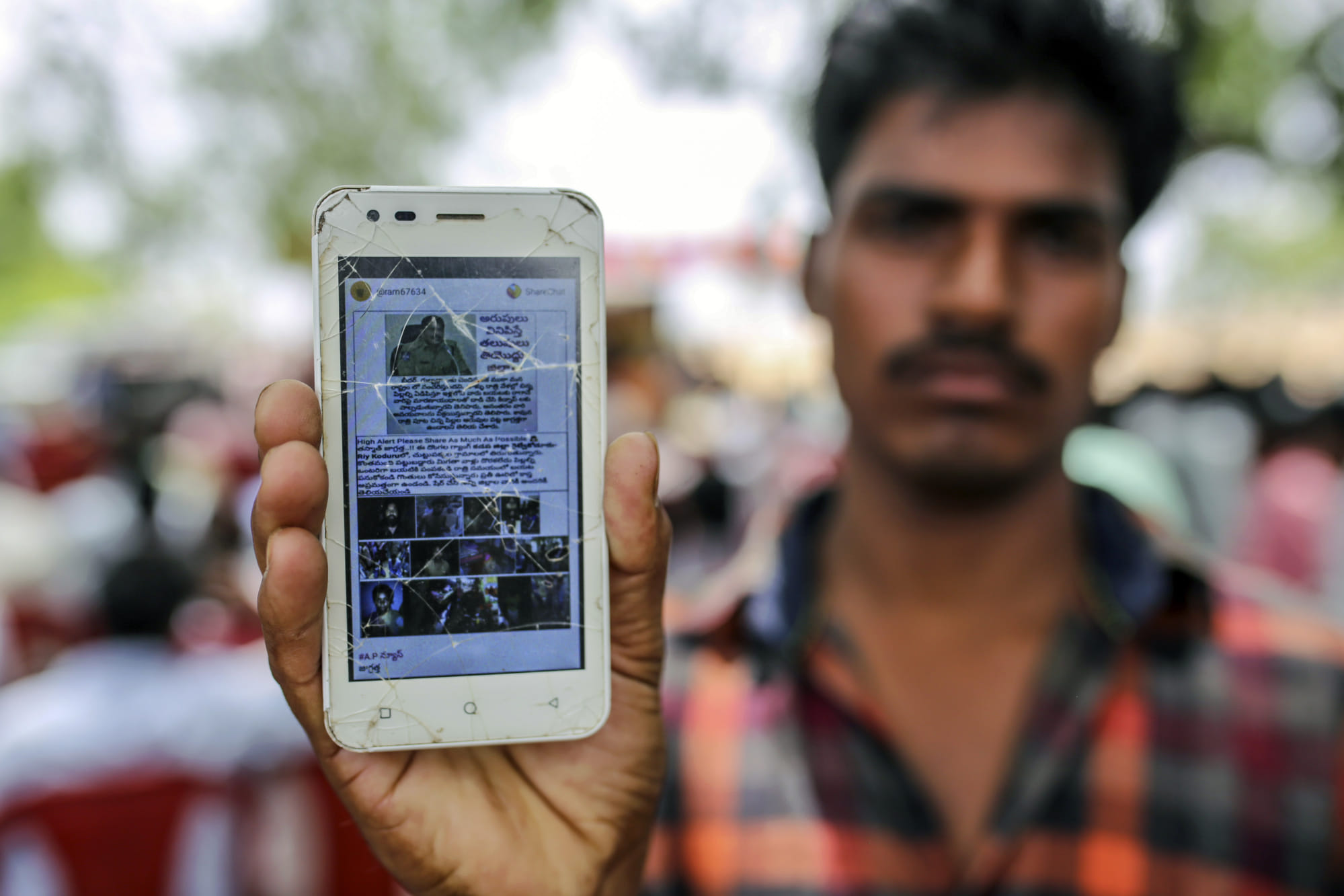 In the village of Bagera, Thirumalesh Boya, a 21-year-old construction worker, holds up his battered $44 smartphone to show a bogus message featuring the image of a policeman. “High Alert Please Share As Much As Possible,” it says, before warning of murderous gangs. Boya says he forwarded the message, before learning better from the police.
