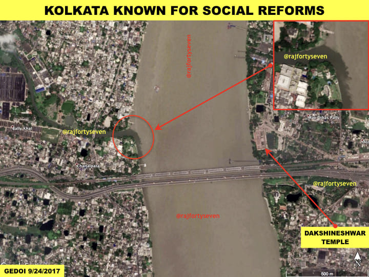 Right in front of the famous Dakshineshwar temple, a nala joins the Ganga carrying a large amount of industrial and domestic sludge.