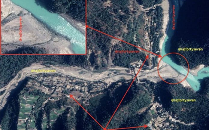 The satellite images show the river is the cleanest at this point as it emerges out of the mountains, but a nala (drain) carrying waste joins the river near the north of the city.