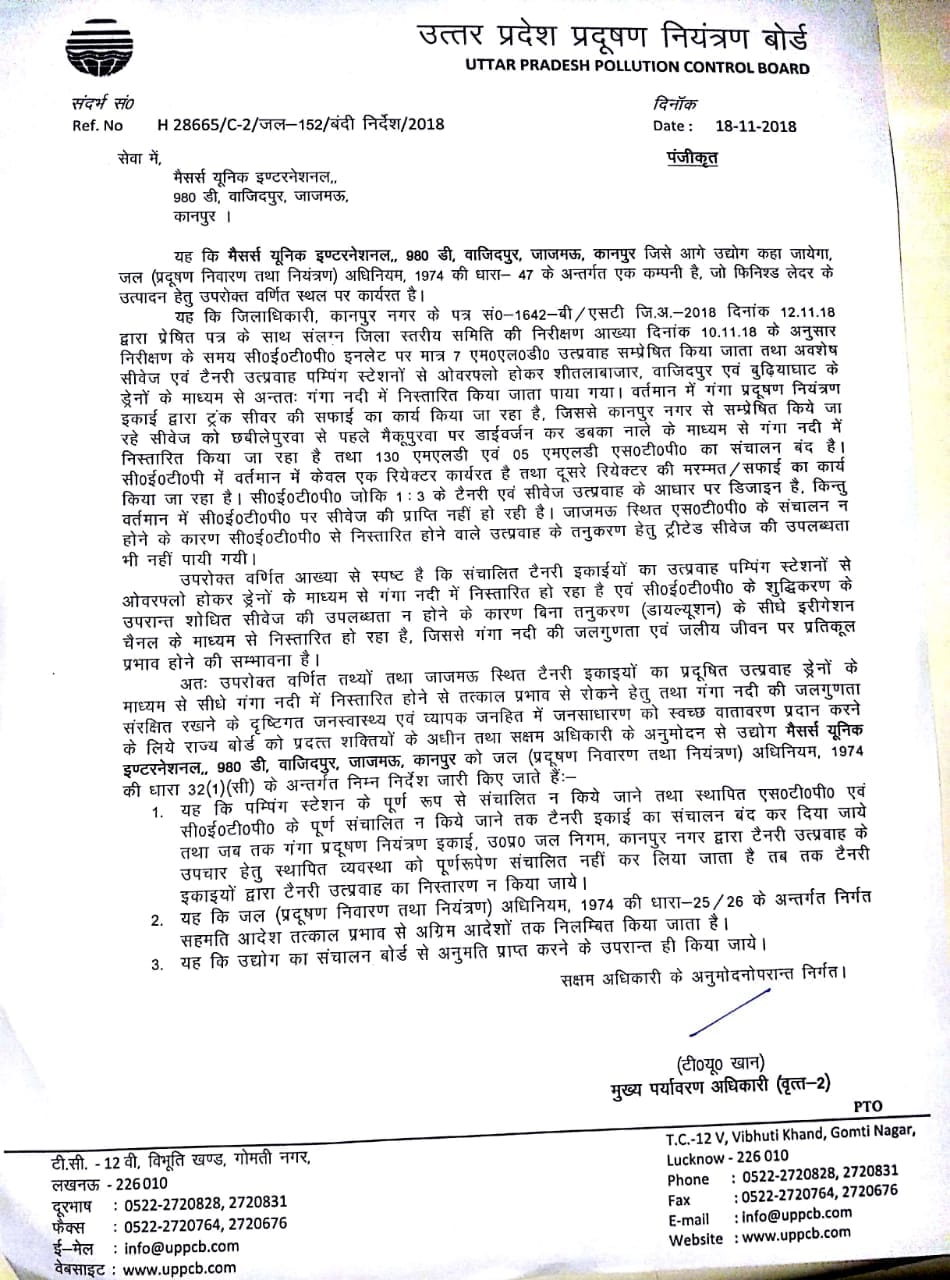 An initial order had called for the industries to be shut down on 18 November 2018, saying the Ganga needed to be cleaned up for the hundreds of thousands of devotees who would take a dip in the river during the Kumbh Mela.