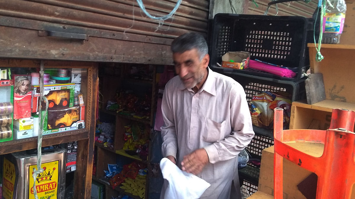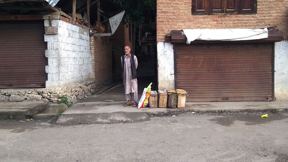 At a shop with half-open shutters, a grocer in Sallar, Anantnag, was seen passing a bag of flour to his customers. “Make room for others,” he said to the crowd gathered outside. It was evening time.