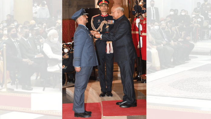 “President Kovind presents Vir Chakra to Wing Commander (now Group Captain) Varthaman Abhinandan. He showed conspicuous courage, demonstrated gallantry in the face of the enemy while disregarding personal safety and displayed an exceptional sense of duty,” the Rashtrapati Bhavan tweeted.