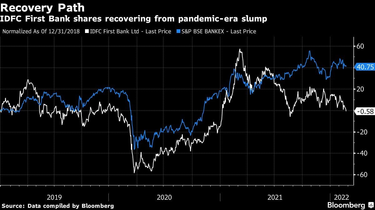 Shares in IDFC First Bank have risen about 5% since Dec. 18, 2018, when the bank was created.It has also recovered from a 2020 slump amid the pandemic and Vaidyanathan was re-appointed for another term that ends in 2024. –Bloomberg