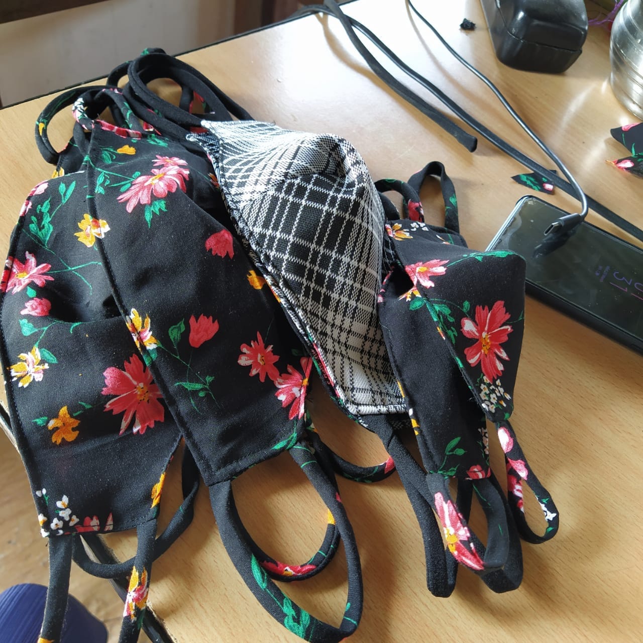 Diana began making the masks from the leftover fabrics.