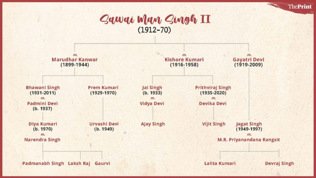 The relatives in question are the children of Prithviraj Singh and Jai Singh, the sons of Maharaja Sawai Man Singh II — the ruler of Jaipur from 1922 to 1947 — and his second wife Maharani Kishore Kanwar.