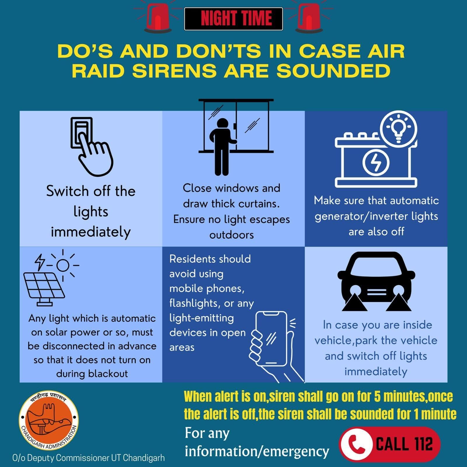 6.45 pm: Chandigarh district commissioner issues advisory on what to do in case air raid sirens are sounded.