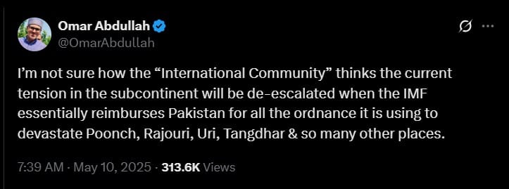 8.30 am: CM Omar Abdullah slams the International Monetary Fund’s (IMF) loan to Pakistan.