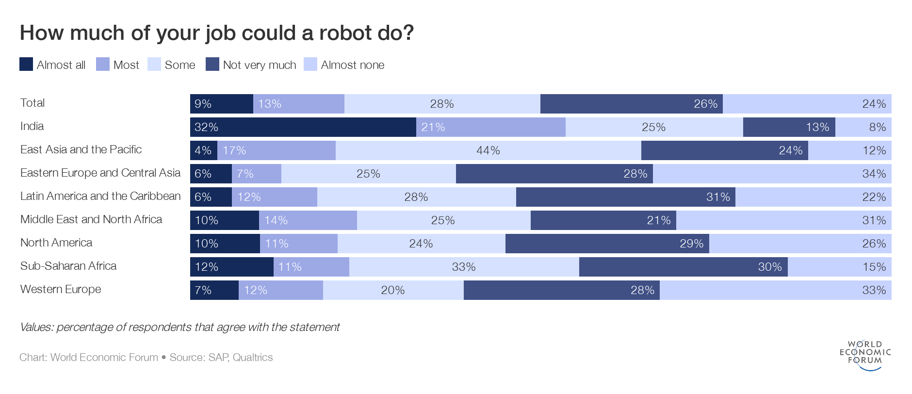 The poll has found Indian respondents to be ‘highly optimistic’ about the impact of technology in their lives and livelihood. Indians are also found to believe that they can switch jobs if such a need arises, even as 50 per cent of respondents have acknowledged that their work could easily be done by a robot too.