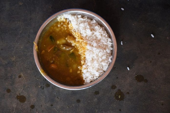 The government scheme requires each primary school meal to include 450 calories and 12 grams of protein, increasing to 700 calories and 20 grams of protein for the upper primary class.