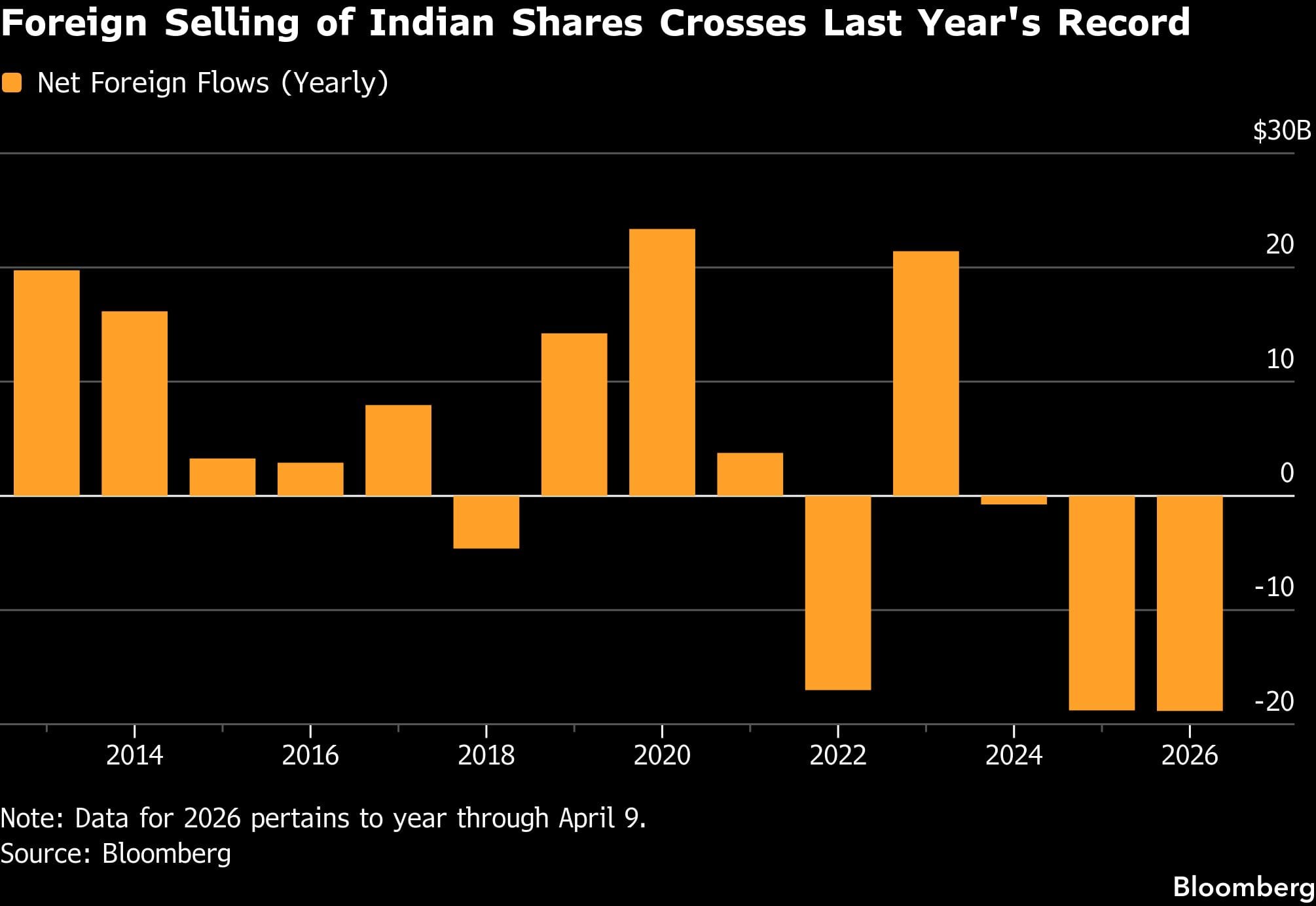 The combination of a surging energy import bill and a widening fiscal deficit is worrying foreign investors. Overseas funds have pulled nearly $19 billion from local markets in the first few months of the year, close to the full-year record for 2025. That’s pushed the rupee past an all-time low of 95 per dollar, prompting the central bank to take some of its most aggressive steps in a decade to curb banks’ speculative bets.