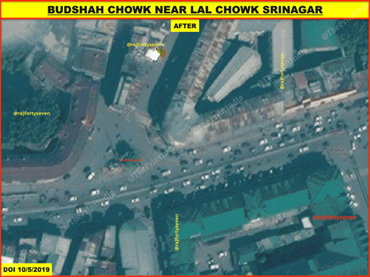 Budshah Chowk is located barely 160m north of Srinagar’s famous Lal Chowk. The exclusive commercial satellite images of 5 October have been compared to images from 10 April and 28 February 2019 — the February image has been added because there was 50 per cent cloud cover in the area on 10 April.