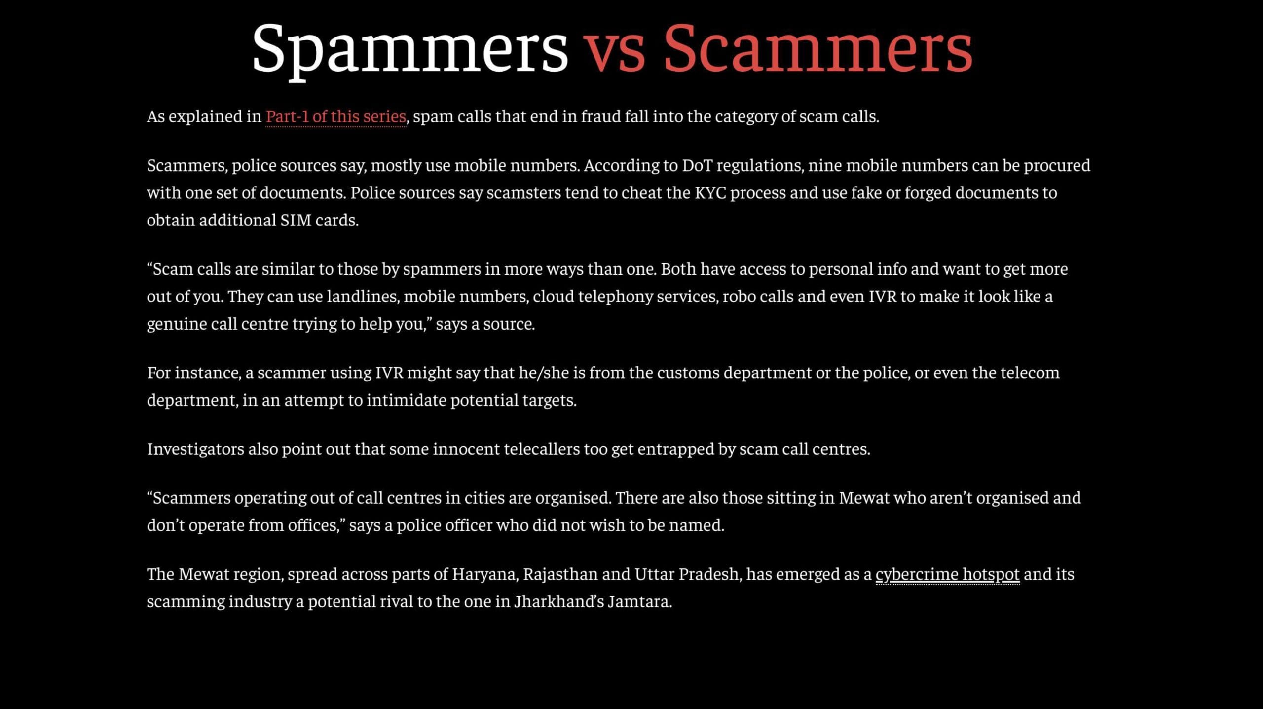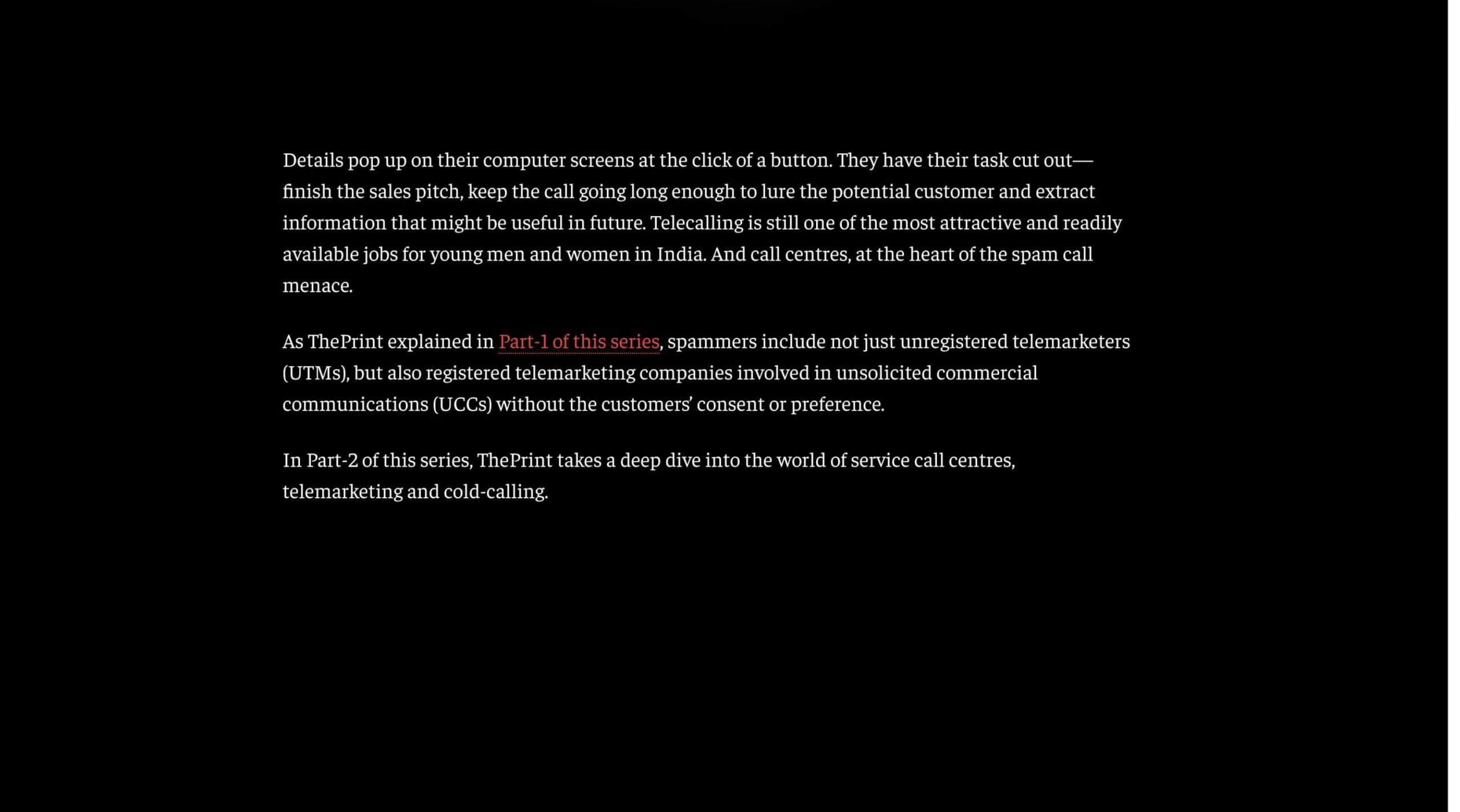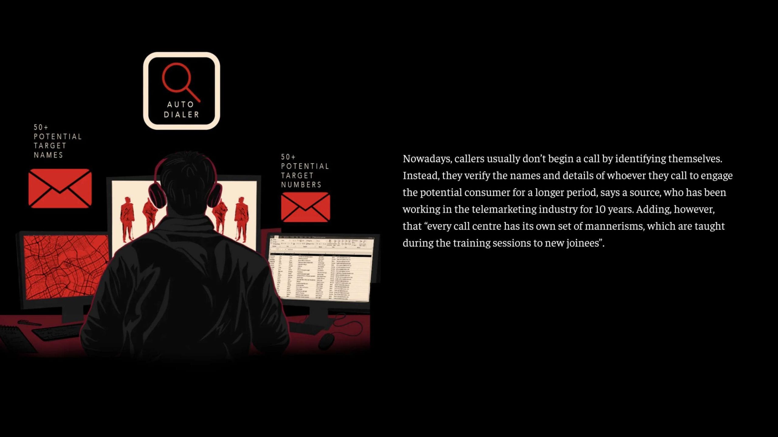 It’s a spam call. But who’s calling? A deep dive into the lives of telemarketers In Part-2 of this 3-part series on the menace of spam calls, ThePrint takes a deep dive into the world of service call centres, telemarketers and cold-calling. India Bismee Taskin 07 October, 2024 09:30 am IST FacebookTwitterWhatsAppLinkedin FacebookTwitterWhatsAppLinkedin