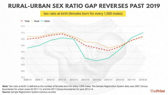 “As fertility declined first in urban areas, the pressure to give birth to a son continued. Access to ultrasound sonography was easier in urban areas compared to rural areas in the 1990s and 2000s. So, the continued demand for son coupled with the easy accessibility/supply of ultrasound sonography led to the decline of sex ratio at birth initially in urban India,” he told ThePrint.