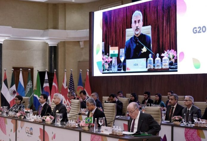 NEW DELHI (Reuters) – Most members from the Group of 20 nations (G20) strongly condemned the war in Ukraine on Thursday, with only Russia and China disagreeing, current president India said after a meeting of the bloc’s foreign ministers in New Delhi.