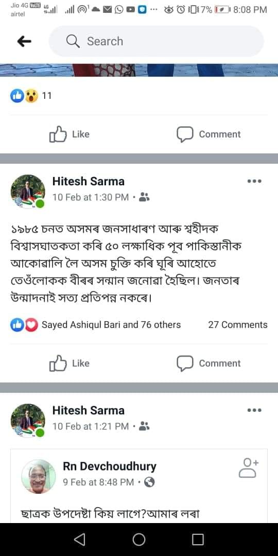 One post sought to pour scorn on the Assam Accord, which sought to legitimise the citizenship claim of immigrants who entered the state before 1971, when Bangladesh was liberated.