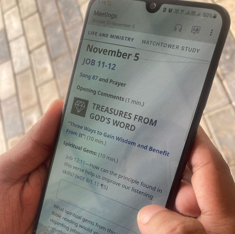 The theme of this week’s prayers is “Treasures from God’s Word”. It’s the same theme for Jehovah’s Witnesses across the world. There’s even an app to keep things streamlined.