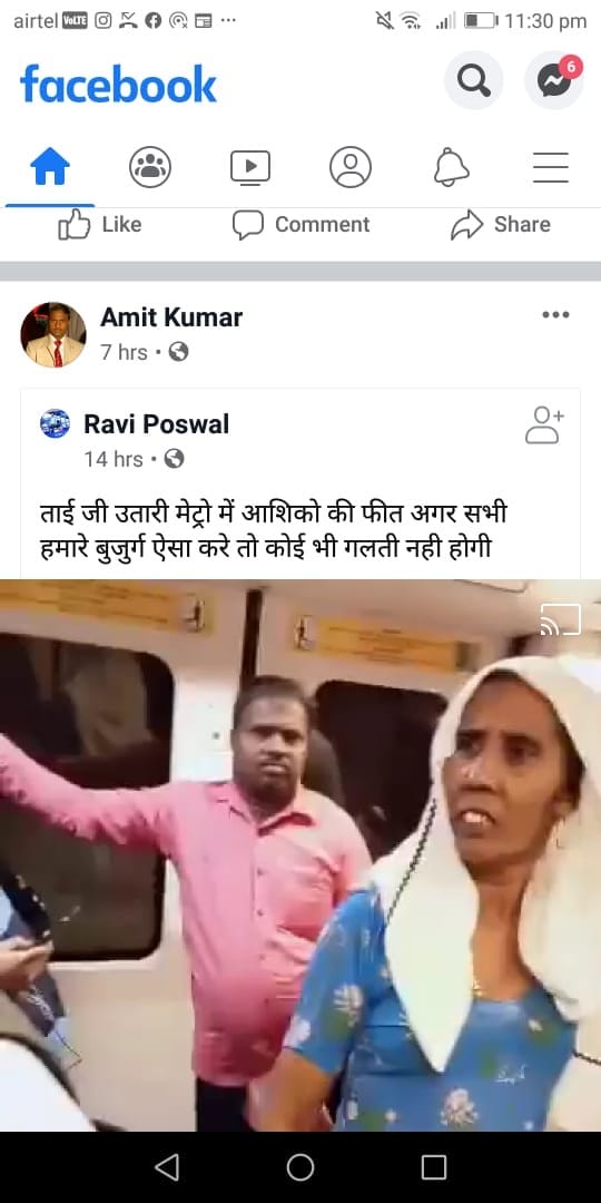 आज सोशल मीडिया पर छाई रही हरियाणा की ताई।मेट्रो में आशिकों का भूत उतारने में माहिर।जय हो???? pic.twitter.com/XGpH9Y7L5s