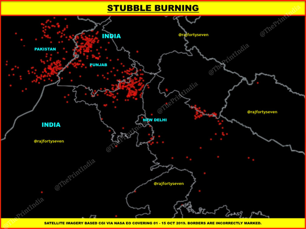 A NASA Earth Observatory image created from a combination of satellite images from 1 to 15 October suggested that stubble burning begins in the early part of the month, and peaks around the first week of November every year.