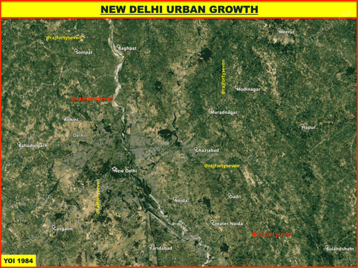 Urban population growth is also a major reason behind the worsening situation — a comparison of satellite images from 1984 and 2019 show that Delhi and neighbouring cities and towns have grown at a tremendous speed.