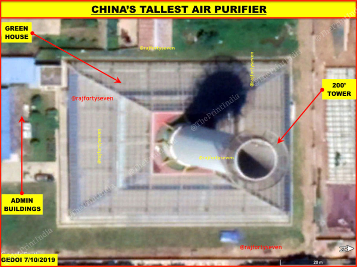 Latest satellite images show a 60m by 43m experimental air purifier — the world’s largest and tallest, with a 200-foot-high tower.