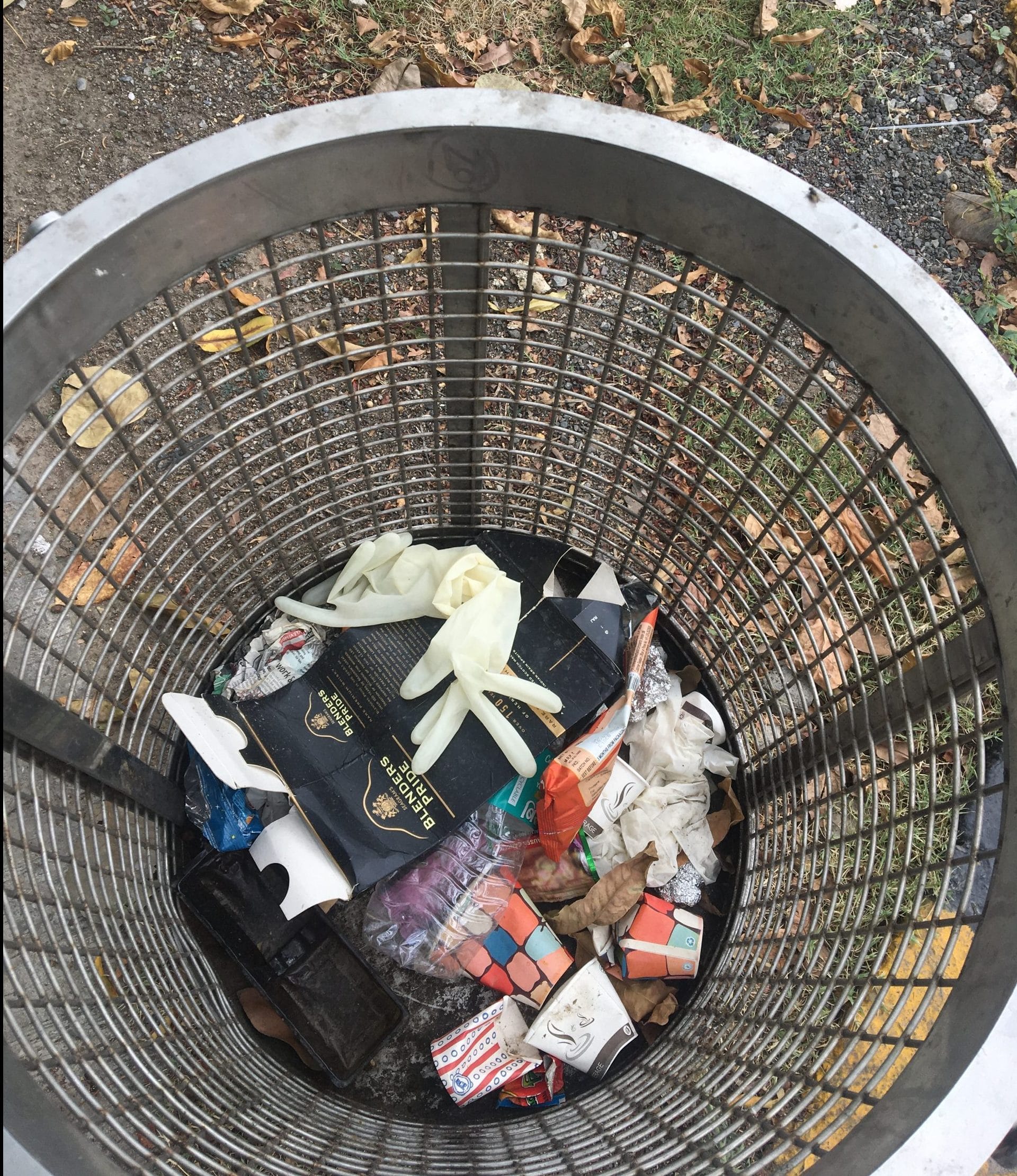New Delhi: Disposed facial masks, gloves, half-eaten plates of food, candy wrappers, cigarette packets, used paper cups and even an empty alcohol container — these are items that fill up the garbage bins just outside Ram Manohar Lohia (RML) Hospital in central Delhi.