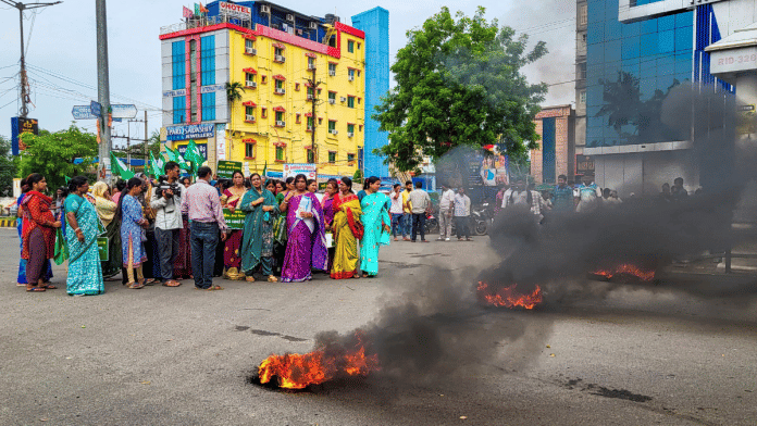 The BJD workers burnt tyres on the roads in Balasore, expressing anger over the “inaction” of the government that led the girl to self-immolate herself in protest of the sexual harassment.