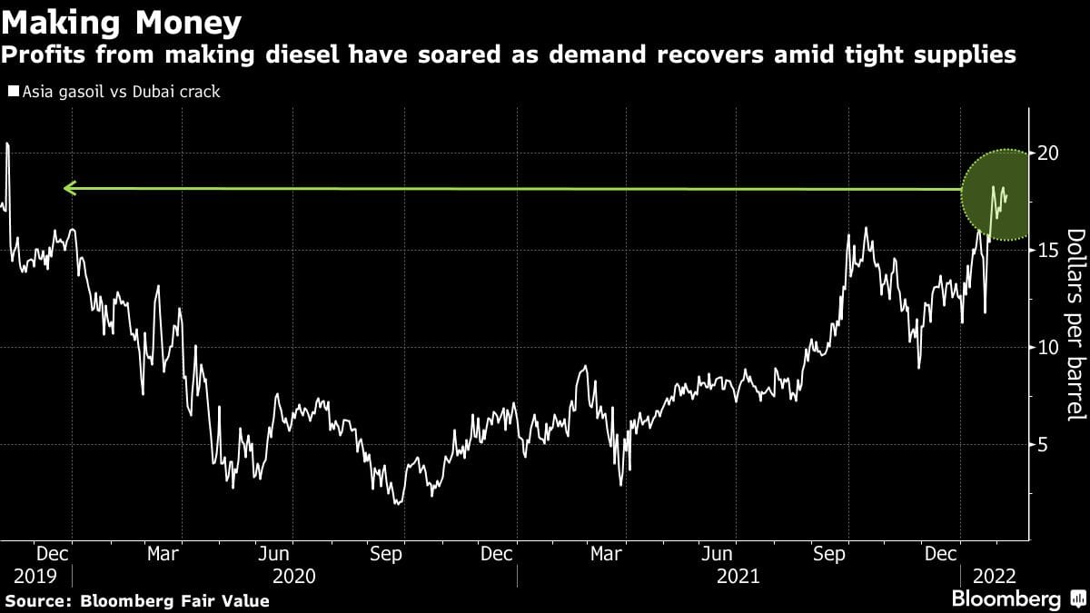 Profits from making diesel, the most popular fuel in India that its refineries are geared to produce a lot of, have risen to the highest levels in two years in Asia and the U.S. That’s providing an added incentive for domestic processors to crank up their run rates. Exports from India have also become increasingly crucial for the region amid a reduction in shipments from China.