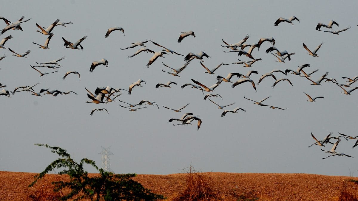 Somewhere on the edge of Thar desert in Rajasthan, this is how the day starts. The incessant `krok-krok-krok’ sound coming from all around, almost replicating an eco-chamber effect, followed by the appearance of thousands of mysterious figures up in the grey sky. The uncertain morning light hides more than it reveals, while the sun still lazing in the background make them look like overgrown bats. And then, they start descending right in front of you.